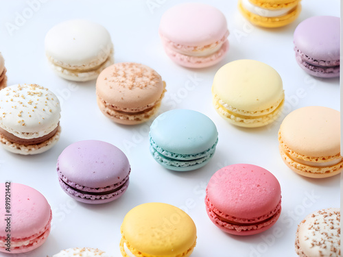 colorful macaroons on a white background. Generative AI.