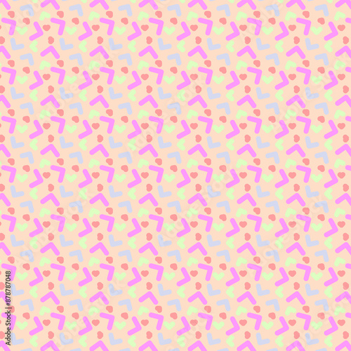 Colorful Memphis Party Pattern Scattered Random Geometric Shapes Geometry Fun Vibrant Colors Spectrum Hearts 020