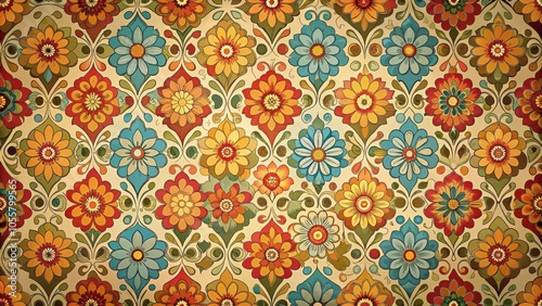 Colorful Nostalgic Retro Style Wallpaper Background with Vintage Design Elements