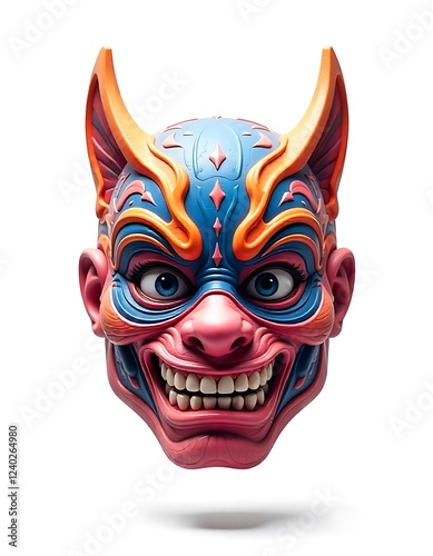 sculpture, head, colourful, blue, orange, mischievous, grin, fantasy art, collectable, design, digital artwork, detailed, realistic, artwork, illustration, home decor, statue, figurine, model, for sale, custom