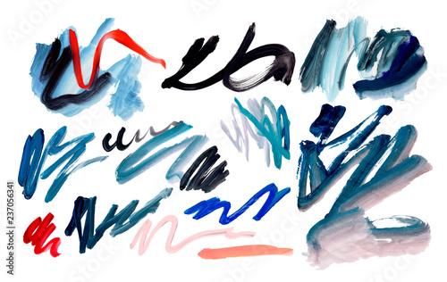 Colorful paint brush stroke set. Artistic decor creative elements