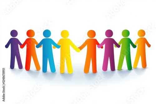 Colorful Paper Cutout People Holding Hands in Unity and Friendship