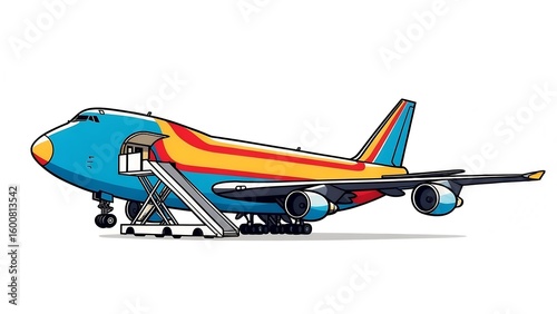 aeroplane, aircraft, jet, plane, airliner, gargantuan, passenger, commercial, transport, travel, aviation, flight, aerodrome, journey, vacation, tour tourism, air, sky, international, global, logistic, delivery, freight, illustration, vector, cartoon, graphic, drawing, icon, symbol