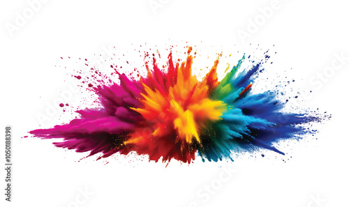 colorful pigment powder, explosion of colored powder exploding isolated on white background