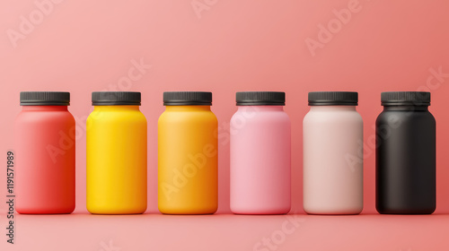 Colorful Pill Bottles on a Pink Background