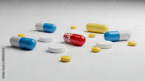 pill, capsule, medicine, medication, drug, pharmacy, health care, health, medicals, treatment, therapy, prescription, supplement, vitamin, antibiotic, painkiller, tablet, dosage, make well, disease, disease, hospital, doctor, clinic, pharmaceutical, pharmaceutical, chemist's shop, colourful, white background, copy space, well-being, prevention, health care