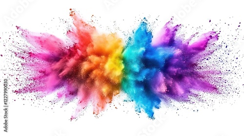 colourful, powder, explosion, isolated, white, background, rainbow, colours, red, orange, yellow, green, blue, purple, dynamic, shape, spreaded, center, outward, vibrant, bright, mixture, blend, burst, no people, stillness, visual, artsy, abstract, splatter, paint, aesthetic, creative, art, design, pattern