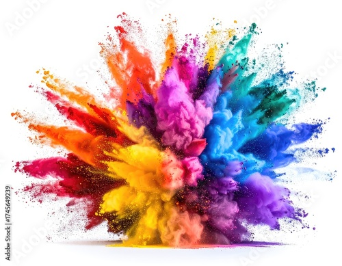 Colorful powder explosion, vibrant hues bursting, white background