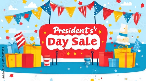day, sale, celebration, banner, gift, colourful, hat, confetti, flag, holiday, event, discount, shopping, festive, star, stripes, patriotic, special, occasion, decoration, blue, red, white, us, america, national, market, commerce, promotion, parade, sale, cheerful, marketing, excitement, offer, savings, retail, happy, announcement, seasonal, exclusive