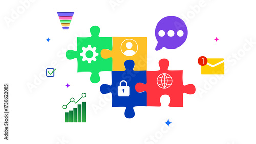 Colorful Puzzple with business connecting to each other concept, transparent png