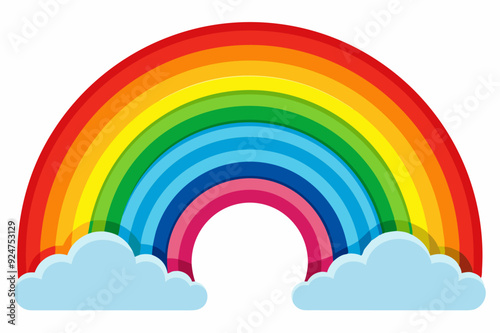 rainbow, arc, colours, red, orange, yellow, green, blue, indigo, violet, white, cloud, sky, weather, nature, bright, vibrant, cheerful, happy, optimistic, hope, dream, magical, fantasy, illustration, graphic, design, art, digital, isolated, background, simple, clean, minimalist