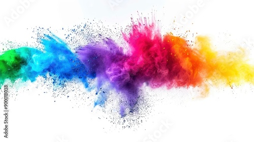 colorful rainbow holi paint color powder explosion isolated white wide panorama background - generative ai