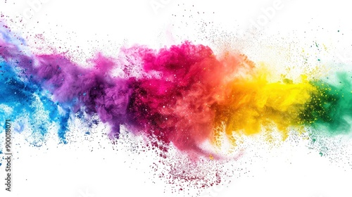 colorful rainbow holi paint color powder explosion isolated white wide panorama background - generative ai