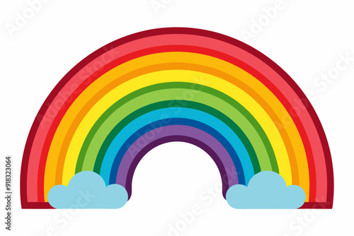 rainbow, arc, colours, spectrum, red, orange, yellow, green, blue, indigo, violet, cloud, sky, weather, nature, bright, vibrant, cheerful, happy, hope, symbol, optimism, positive, magical, mystical, fantasy, art, illustration, graphic, design, cartoon, flat, simple, white, background