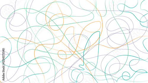 Colorful random line scribble chaotic pattern. Decorative random scribble pattern with tangled curved lines. Abstract wavy linear background outlines random chaotic lines vector illustration.