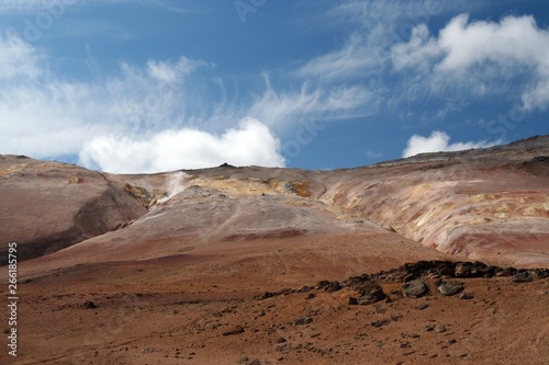 abandoned, background, beautiful, beauty, barren, dry, blue, cloud, colourful, country, day, desert, destination, eruption, iceland, landscape, rough, ground, lonely, loneliness, mountain, no people, red, colours, scenic, sky, summer, sun, travel, vale, arid