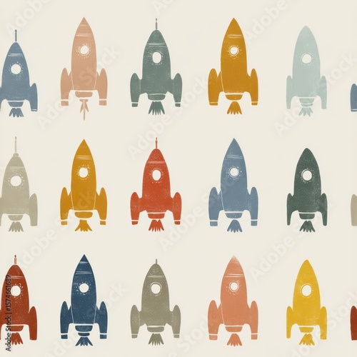 Colorful Rocket Illustrations on Cream Background for Kids Decor
