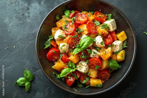 salad, fresh, tomatoes, mozzarella, basil, herb, spice, colourful, bowl, dining, healthy, meal, food, vibrant, ingredient, receipe, cookery, vegetarian, setting, garnished, preparation, culinary, eating, delicious, epicure, nourishment, vitamin, summer, refreshing, simple, mediterranean, seasonal, organic, chopped, vegetable, style, dish, entertaining, light, favor, produce