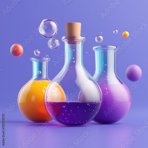 Colorful Scientific Laboratory Glassware and Bubbles