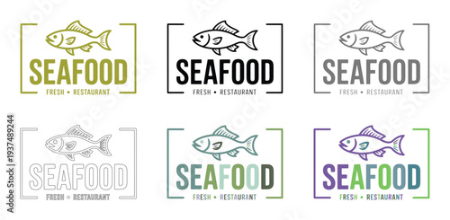 seafood, eatery, logotype, fish, food, fresh, colourful, design, illustration, typography, branding, graphic, icon, label, signs, symbol, advertising, marketing, business, green, yellow, purple, grey, black, white, vector graphics, logotype, logo design, graphic design