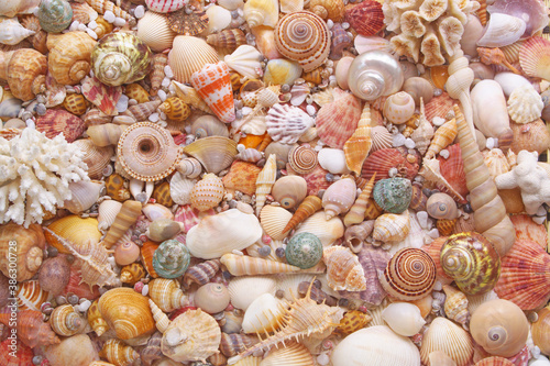 Colorful seashells and corals as background