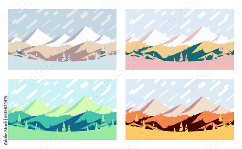 mountain, season, square, collection, vector, spring, summer, fall, winter, christmas, template, cartoon, illustration, artwork, autumn, cosy, scenery, editable, fir, hill, holiday, landscape, meadow, new year's eve, outdoors, pine, poster, silhouette, ski resort, sky, sunset, tour tourism, adventure, beautiful, nature, vintage, pink, green, yellow, orange, background, country, landmark, peak