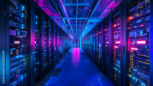 Colorful server room with glowing lights in a data center