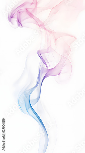 Colorful smoke clouds, pink and blue colors, white background