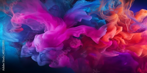 Colorful Smoke on Dark Background: Wide Format Photograph. Concept Colorful Smoke, Photography, Dark Background, Wide Format, Artistic Portrait