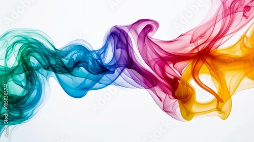 Colorful smoke wave on white background, abstract artistic design, vibrant and flowing.