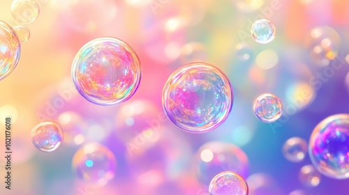 Colorful soap bubbles floating against a soft pastel background, creating a dreamy and whimsical atmosphere.