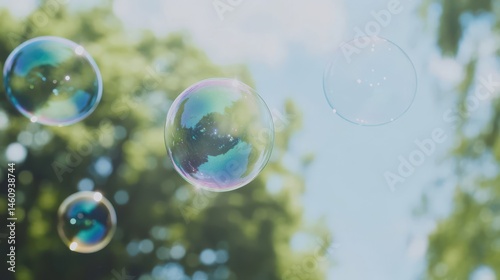 bubble, soap, colourful, sunlight, garden, tree, sky, outdoors, summer, floating, reflections, iridescent, bright, clear, transparent, round, light, air, natural, daylight, green, blue, detail, view, closeup, soft, sharpened, delicate, high-coloured, pastel, playful, exterior, enjoyable, activity, moment, joyful, happy, carefree, whimsical, impression, relaxing, refreshing, spectacular, nature