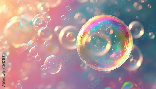 Colorful soap bubbles floating natural light macro photography dreamy atmosphere abstract concept for relaxation