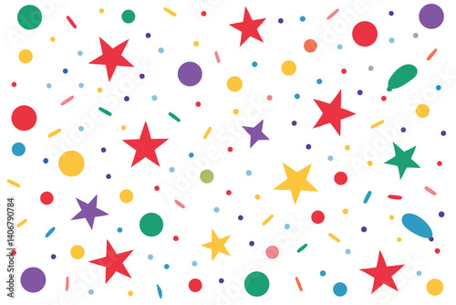 Colorful Stars and Confetti Scattered on White Backdrop Festive Celebration Design