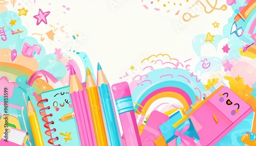 Colorful stationery and art supplies create a vibrant backdrop for creativity and inspiration.
