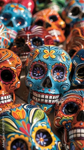 day of the dead, traditional, colourful, celebration, holiday, decoration, art, craft, hand-made, painted, ceramic, folk art, mexico, latin america, souvenir, gift, festival, vibrant, pattern, design, texture, closeup, macro, bright, festive, whimsical, cheerful, happy, life, death, spiritual, remembrance, ancestor, symbol, icon, tradition, history, heritage, calaveras, altar