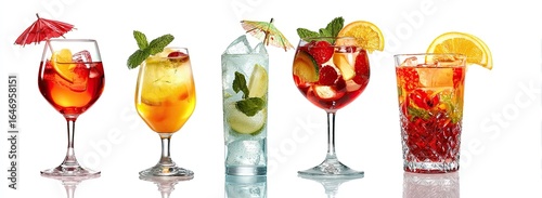cocktail, drink, beverage, summer, fruit, ice, red, orange, yellow, lemon, lime, strawberry, raspberry, mint, glassware, decoration, umbrella, refreshing, party, celebration, delicious, alcohol, nonalcoholic, iced, mixed, slice, transparent, colourful, healthy, tasty, beautiful, isolated