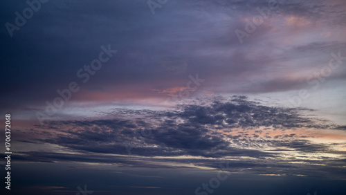 Colorful sunset with dramatic clouds over the horizon. A breathtaking evening sky filled with warm light.
