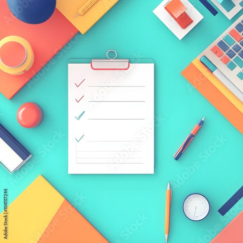 business, abstract, background, work, design, turquoise, to, clipboard, top, success, yellow, blue, list, task, shape, efficiency, flat, supply, management, organisation, view, time, geometric, stationery, to do, clock, lay, red, modern, deadline, goal, pen, productivity, graphic, planning, schedule, mint, checklist, achievement, minimalism, orange, office