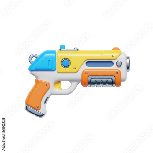gun, toy, blaster, weapon, colourful, futuristic, cartoon, style, rendering, technology, plastic, game, object, design, illustration, handgun, play, equipment, future, space, trigger, handle, safety, shoot, science, fiction, firearm, laser, fantasy, digital, shooting, modern, war, combat, fire, defense, protection, attack, competition, fun, children, graphic, nobody, single, chrome, metal, security