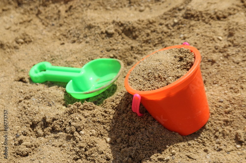 Colorful toys for children's sandboxes on the sea beach