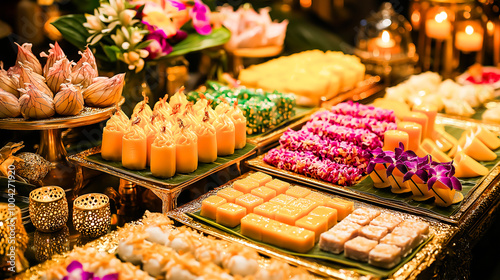 Colorful Traditional Thai Desserts on Display