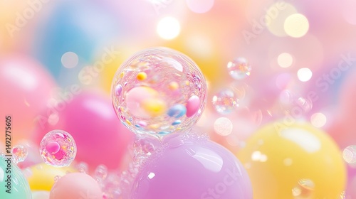 Colorful translucent spheres in a vibrant, playful design.