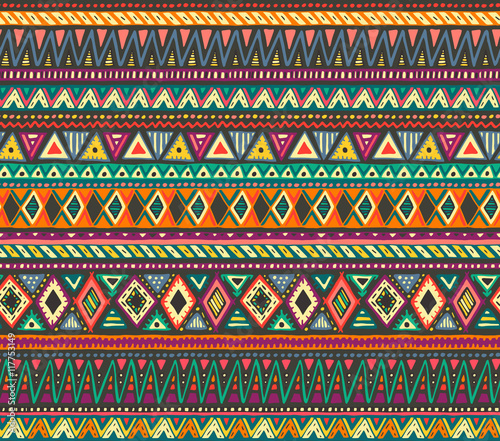 Colorful vector seamless pattern with hand drawn ethnic elements.
