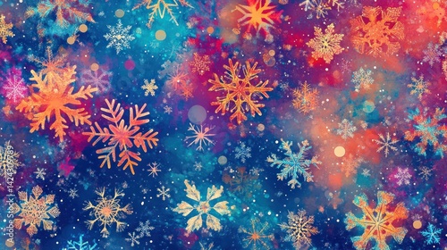 Colorful Winter Wonderland: An Abstract Snowflake Fantasy Background