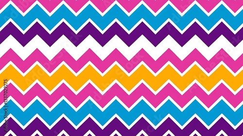 Colorful zigzags background pattern repeating with white lines, for use as wallpaper or design