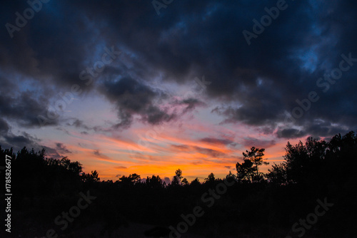 sunset, sky, cloud, sun, nature, cloud, orange, evening, landscape, sunrise, light, dusk, red, night, blue, storm, dramatic, cloudscape, silhouette, beautiful, colourful, dark, horizon, tree, sunlight, forest