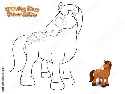 Coloring The Cute Cartoon Horse. Educational Game for Kids. Vector illustration