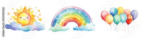background, birthday, cartoon, celebration, clip art, colours, creativity, cut-out, design element, drawing, element, font, fun, happiness, happy, motion, many-coloured, outdoors, party, rainbow, set, smiling, studio shot, transparent, vibrant color, watercolor, wet, white background