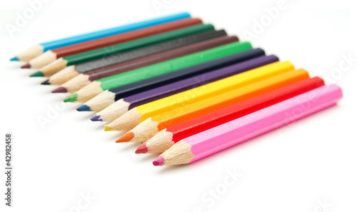 Colour pencils isolated on white background close up